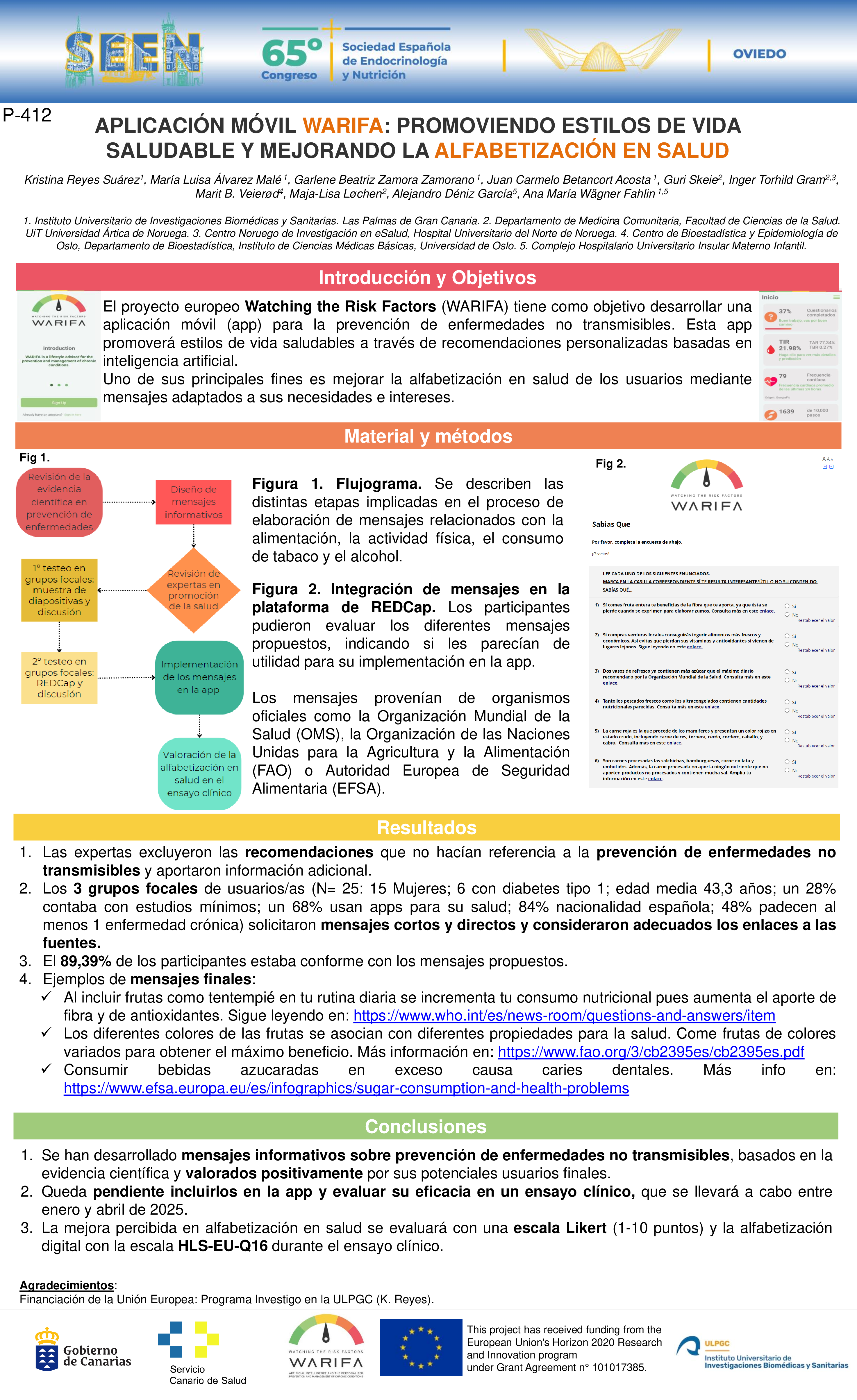 Kristina Reyes Suárez, Maria Luisa Álvarez-Malé, Garlene Zamora Zamorano, Juan Carmelo Betancort Acosta, Guri Skeie, Inger Torhild Gram, Marit B. Veierød, Maja-Lisa Løchen, Alejandro Déniz García, Ana María Wägner Fahlin